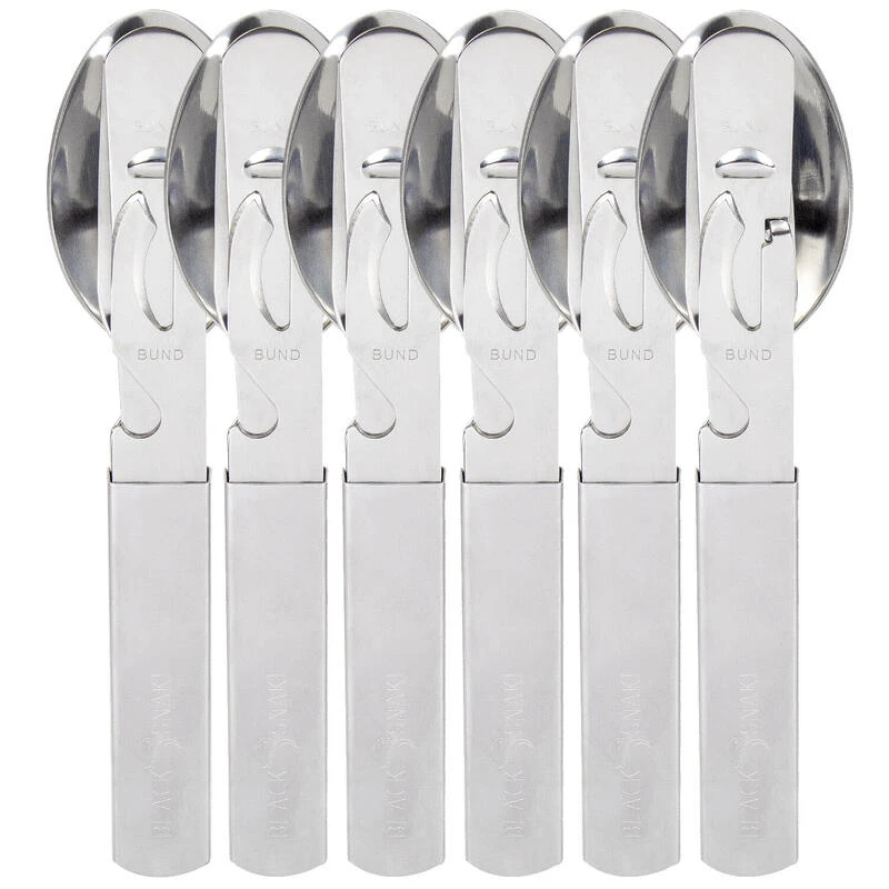 · 4 pièces de couverts par set: fourchette, couteau, cuillère, ouvre-bouteille & ouvre-boîte