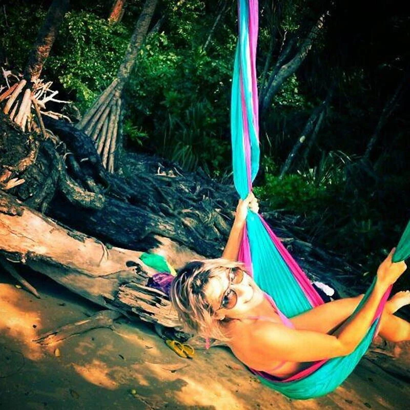 Le hamac TTTM en toile de parachute bleu Aqua/rose sera votre compagnon idéal pour vos siestes en plein air!